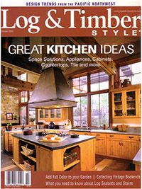 One of Sagewood's kitchen's highlighted in Log & Timber Style magazine. |