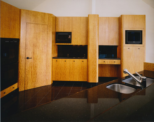 Contemporary kitchen in satinwood veneer